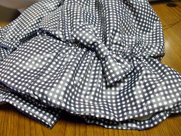 ※袖ゴムは裾周りより10cm以上引き出して結ぶ