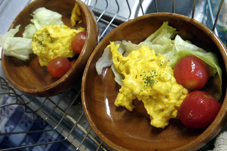 卵とベーコンとカボチャマッシュのサラダ