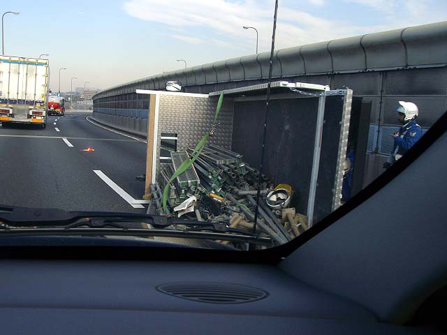 コーナーで積荷が重くて転がっちゃった?